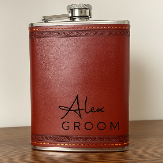 Personalised Leather Hip Flask – Engraved Wedding Party Gift