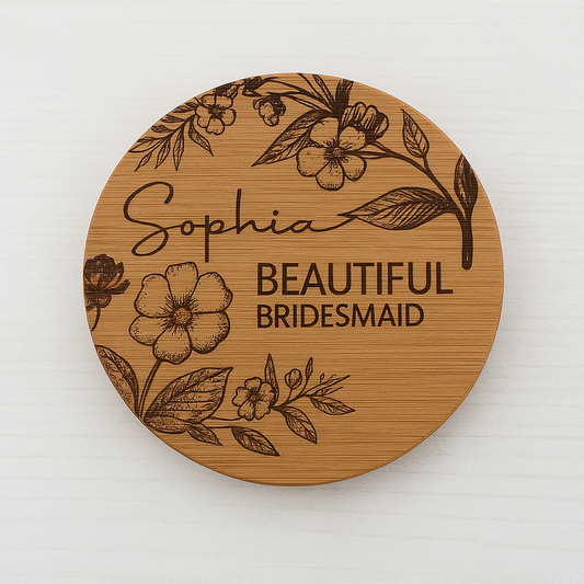 Personalised Bridesmaid Bamboo Compact Mirror -Beautiful Bridesmaid